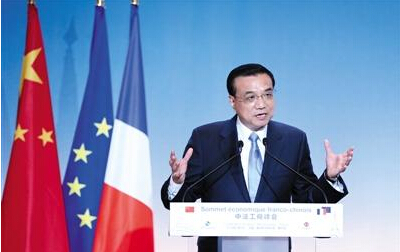 2日,李克強總理在法國圖盧茲的中法工商峰會上發表演講。 圖/中國政府網