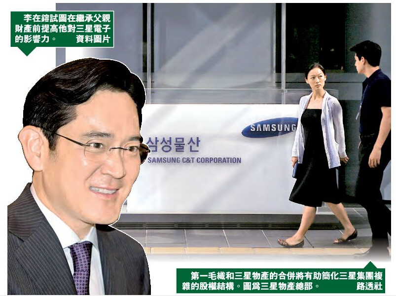 三星集團的實際控股公司第一毛織和三星集團旗下建築及貿易子公司三星物產的合併,將有助簡化三星集團復雜的股權結構。三星集團由約70家公司組成,這些公司通過復雜的交叉持股聯繫在一起。通過上述合併交易,李在鎔將直接控制三星物產在三星電子所持的4.1%股份。李在鎔目前持有第一毛織23%的股份。三星電子是以銷量計全球最大的手機制造商。李在鎔試圖在繼承父親財產前提高他對三星電子的影響力。李在鎔的父親李健熙是三星集團董事長,目前臥病在床。