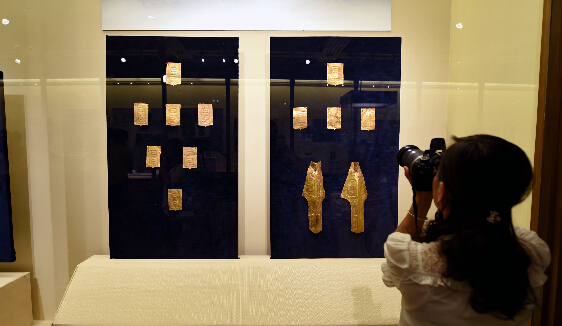 中新社记者在现场看到,展览用?事的手法,以32件金饰片追索返还为主线,采取实物展示与图片、文字展板说明相结合的形式,从“国宝回家”、打击与抢救、保护与研究、追索与返还等四个部分展出。