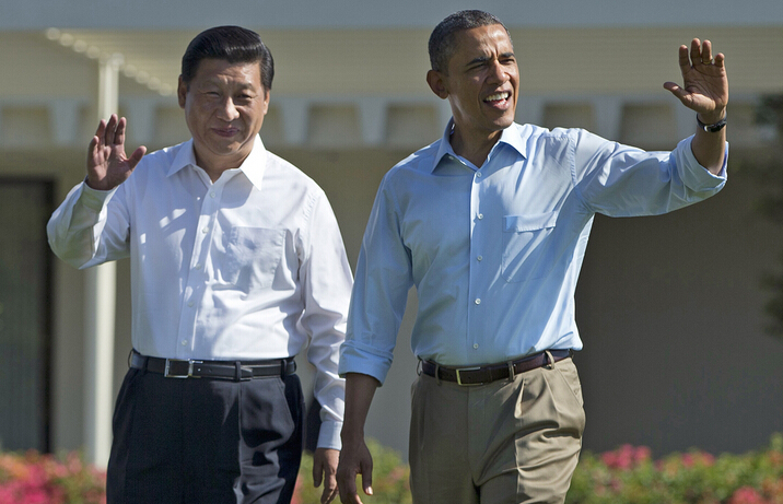 2013年习近平访美时与奥巴马在庄园内散步。美联社资料图