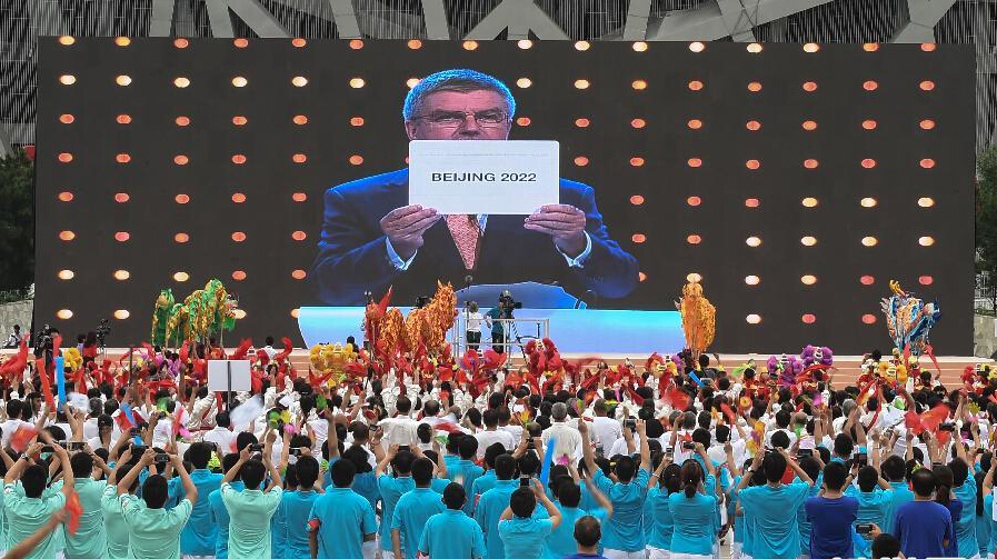 國際奧委會主席巴赫宣布投票結果,北京贏得2022年冬季奧運會舉辦權。