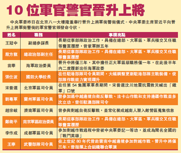 除了公布查處王信這個武警少將,官方還通告,黑龍江省軍區副司令員張代新因犯貪污罪,被判處有期徒刑10年。張代新曾任解放軍瀋陽軍區第16集團軍后勤部部長,2012年升任黑龍江省軍區副司令員。