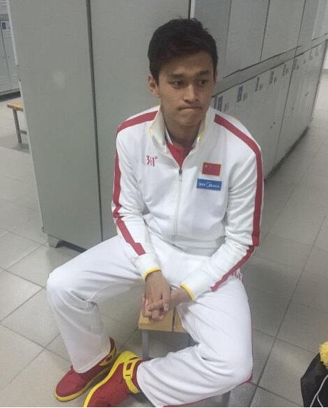 孙杨在休息室休息,因伤病不适未能参赛令他非常遗憾