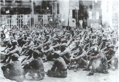 新四軍在皖南巖寺集中(1938年)的歷史照片。