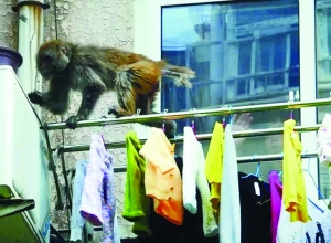 徐州西區的開元四季小區最近也經常能見到有猴子侵入。小區居民告訴現代快報記者,猴兒有時候在小區大搖大擺溜達,有時候在居民樓上躥下跳,還會趴在居民窗戶上“偷窺”,呲牙咧嘴地作個怪臉,把屋里的人嚇得尖叫。