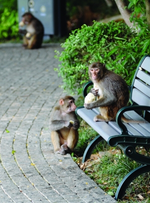 其實等到天黑的時候,這些猴子就會返回山上了。“因為猴子的父母會找它,而且族群一級一級的還會‘點名’,如果哪個猴子不在,很快便會被發現。”馮照軍教授說,當然,也不排除有“自立山頭”的公猴,跑出來后就“沒打算”再回去。