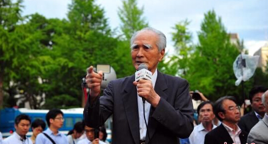 90高齡的日本前首相村山富市,7月23日傍晚出現在日本國會前的街頭舉行的民眾抗議集會上,并發表演說,反對安倍政權強推以解禁集體自衛權為核心的一系列安保法案。王健攝