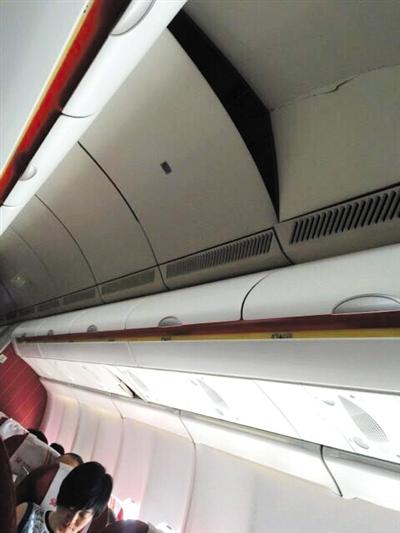 空中顛簸后,機艙內的部分行李架出現破損。網友供圖