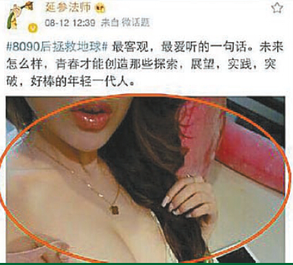 估計法師發完后,當時自己也嚇尿了。該微博隨后被刪。之后延參法師連發9條微博賣萌自拍證清白,稱「新浪微博配圖,你怎麼了,嚇死寶寶了」,「快坑死老衲了,嗚嗚嗚嗚嗚嗚。」這讓網友們感受到了高僧平易近人的另一面。
