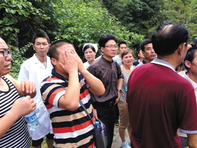 昨天下午4時許,失聯者家屬首次獲準進入塌方現場,一名家屬難掩悲慟。新京報記者 韓雪楓 攝
