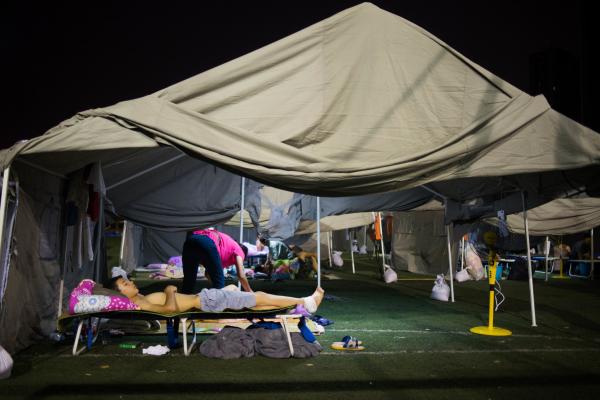 2015年8月14日,天津,當地一所學校操場成了災民臨時安置點。 CFP 圖