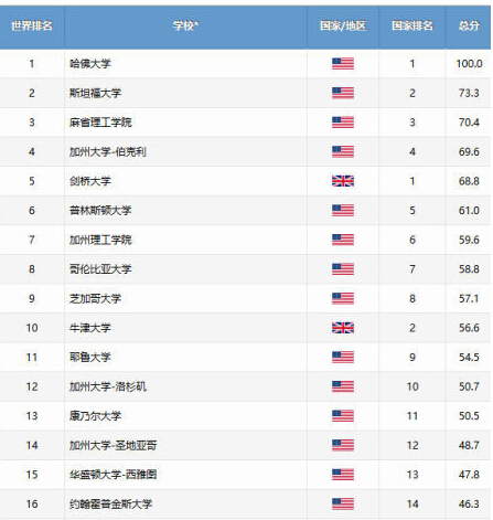 报道称,与此同时,请记住这是一份世界大学排行榜,而排在前10名的大学除了英国的牛津大学和剑桥大学两所大学之外,全部为美国大学。美国自2003年以来在完全可预测的大学排行榜上引领全世界大学。