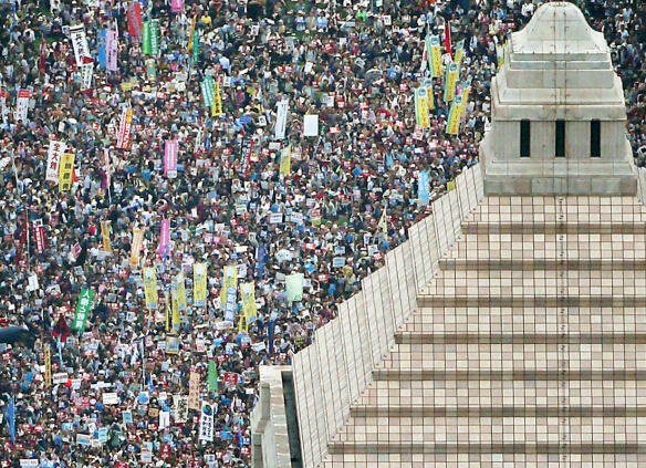 東京12萬民眾冒雨包圍國會