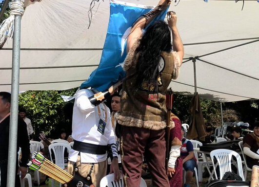 8月8日,在我们参赛用的棚子外,一名德国籍土耳其裔选手趁中国弓友外出训练之机,偷偷挂了一块“东突”分裂势力的旗子。大家回来发现后,立即到组委会抗议。当时组委会的人以为是某俱乐部的旗子,在确认事实并没有找到那个德国人的情况下,让我们把旗子解下,最后由组委会没收。想不到的是,那个“东突”分子很快又到步射场地挂了一块旗子,结果被我们队的星爷看到,他大吼一声,冲过去扯旗子,两个人都用身体抵住对方,想把对手压在身下。僵持中,女队友云闲也没有退缩,她是名律师,英语很好,关键时刻上前为星爷帮忙,并提醒星爷绝对不能先动手。