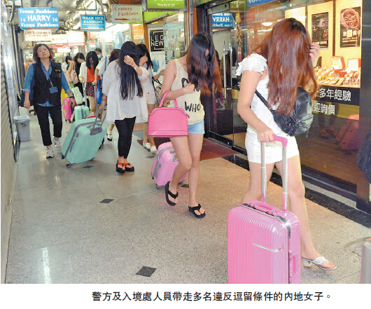 根據線報及經深入調查後,「O記」與入境處聯手採取代號「速破者」(Fastplayer) 的反色情行動,昨日中午12時,突擊搜查九龍區2間酒店內多個房間,合共拘捕24名內地女子(16歲至32歲),其中19人持雙程證,其餘5人持中國護照,她們涉嫌違反逗留條件,1人同時涉嫌逾期居留被捕。行動中,警方檢獲一批安全套、潤滑劑、毛巾及約港幣16萬元現金。