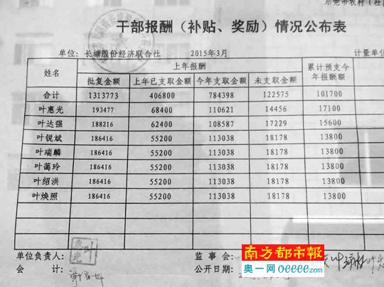 曾排入東莞社區前三甲的中堂鎮潢涌村,公示的干部待遇也比較可觀,人均年薪達到25萬多元。