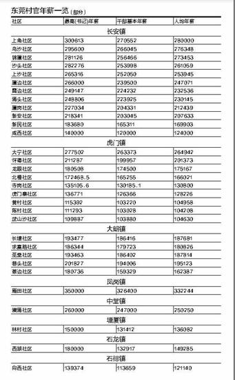 南都訊 日前,有網友爆出長安鎮12個社區的干部工資表,干部年薪普遍為20多萬元,最高者達到30萬元。這樣的高工資,引發公眾一片嘩然。