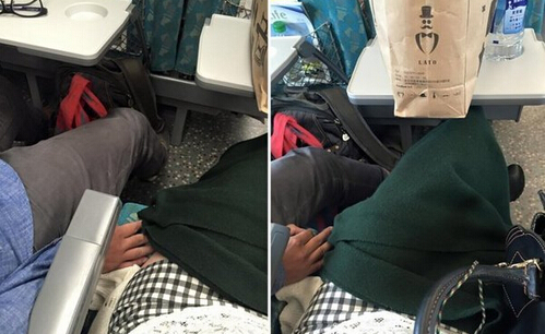 中國臺灣網9月1日訊 據臺灣聯合新聞網報道,一名臺灣正妹日前在搭乘高鐵時,不料遇到色狼以裝睡的方式,趁機將手伸到她的大腿偷摸,嚇的她心臟狂跳、手一直抖。后鼓起勇氣想等色狼再次碰她的時候抓住他,但最后還是讓色狼跑掉了。她把照片po在網上,希望靠大家的力量可以一起把色狼人肉出來。