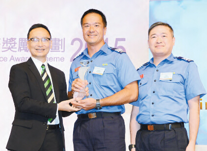 公务员事务局局长张云正(左)颁发最佳公众形象奖给消防处