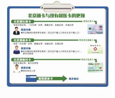 此外市衛計委方面還透露,在北京通卡發放后,包括各大醫院的就診卡和京醫通卡等將會逐步退出。