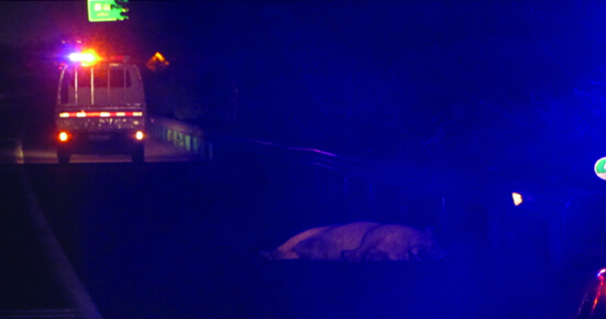 9月7日22時許,一輛河南籍大貨車行駛在蚌寧高速公路上,駕駛員周師傅正準備到前方2公里左右的嘉山服務區休息一下。突然,高速公路行車道上躥出一個黑影,“嘭”的一聲,跟車頭撞了一下。周師傅急剎車后停了下來,就在他準備下車時,發現這個黑影站了起來,在車燈的照亮下,周師傅嚇了一大跳,竟然是頭獅子!獅子左腿可能被撞傷了,但仍一瘸一拐地朝前走。驚出一身冷汗的周師傅不敢下車了,趕緊拿起手機向高速路政報警。