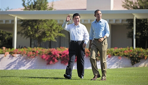 2013年6月8日上午,習近平同奧巴馬在美國加利福尼亞州安納伯格莊園舉行會晤。會晤開始前,習近平和奧巴馬在風光秀麗的莊園內散步,在輕松的氣氛中交談。
