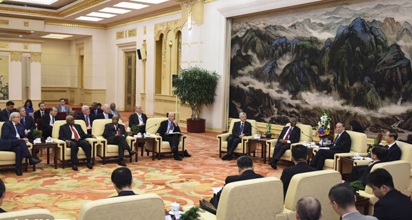 9月9日,中共中央政治局常委、中央紀委書記王岐山在北京人民大會堂會見出席“2015中國共產黨與世界對話會”的外方代表。新華社記者李學仁攝