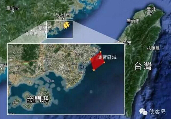 圖中紅框處為演習區域,明白如島上諸君一眼就能看出來,演習貼近大陸海岸一側,演習區域也不大。不但避開了金門,離臺灣本島甚至所謂“海峽中線”都還遠著呢。有媒體查證,解放軍軍演活動范圍在浙江沿海和汕頭沿海一帶。