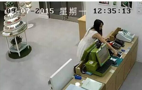 白衣女子在沪疯狂偷盗。图为作案场景。