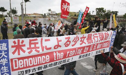 冲绳县民众反对美军新建基地。资料照
