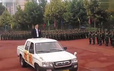 近日,河北科技学院董事长周虎振乘皮卡车“检阅”新生军训的视频在网上热传,此事由该校相关部门确认后,引发网友热议。有网友称,“检阅”新生神似阅兵,周虎振董事长过于高调并有“官瘾”,也有网友称,校领导“检阅”新生军训很普遍,只是乘坐皮卡车“检阅”的情况“比较奇葩”。