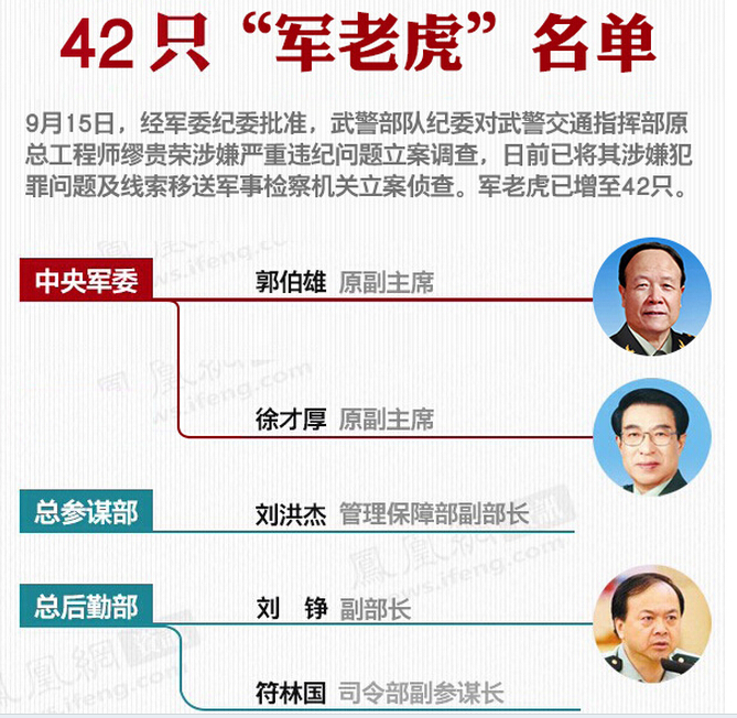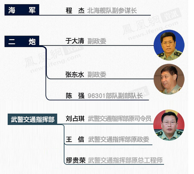 今年6月17日和7月31日,军方分别公布了武警交通指挥部原司令员刘占琪、原政委王信涉嫌严重违纪问题被立案调查。