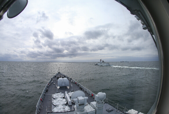 中丹4艘舰艇到达约定会合点後,以“伊万·休特菲尔德”号为基准组成单纵队,在海面上犁出一道白色航迹。接到“组成方位队航行”的命令後,4艘舰艇立即大角度齐转调整队形。此後,中丹参演舰艇先後进行了单横队、方位队、单纵队等多次队形调整。
