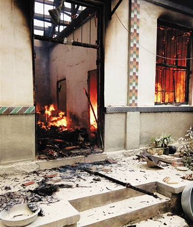 另一个角度看张家屋子正在燃烧。