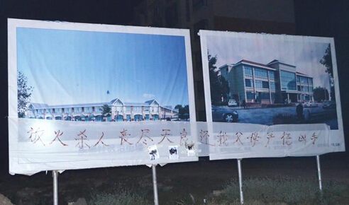 这个牌子后面,就是被拆迁村民安置房的小区。