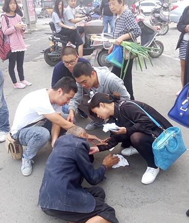 一些愛心市民在撥打了110和120后,上前給老人擦臉上的血跡。
