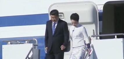 習近平彭麗媛手挽手走下飛機舷梯