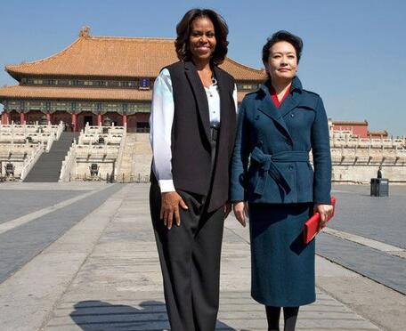 2014年3月,美國第一夫人米歇爾·奧巴馬訪華。彭麗媛與米歇爾參觀故宮