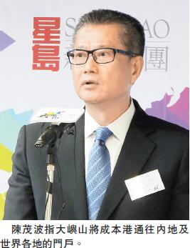 陳茂波進一步指出,將來的港珠澳大橋除了可去到珠三角西部,亦可連接內地的道路網絡,將來由大嶼山出發,一日內可到廣西、南寧,甚至是越南邊境;他形容這些基建落成后,令大嶼山日后發展「空間廣闊」,有機會成為大珠三角地區國際運輸、物流、貿易樞紐。