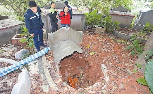 昨晨10時許,一名姓蘇村民連同10多名親友,到上址準備拜祭先人,當到達墳地時,赫見其祖母的墳墓被人掘起,不單棺木外露,棺木蓋更被人打開,祖母尸骨暴露,蘇先生見狀氣憤久久難以平伏,親友馬上報案。蘇生指,其祖母於25年前仙游,并長埋上址,據知當時放置了過萬元的金器陪葬。蘇生事后怒極斥責惡賊:「可能有人偷竊,可能有人想搗亂,搞走先人以便自己人入葬都唔出奇!」