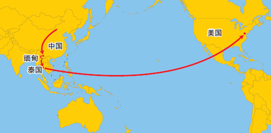 境外人員密謀策劃的包卓軒偷渡路線示意圖。