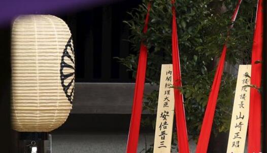 資料圖:4月21日起,日本靖國神社舉行為期三天的例行春季大祭活動,安倍供奉祭品。