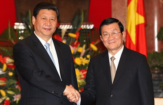 2011年12月,时任国家副主席习近平在河内会见越南国家主席张晋创。资料照