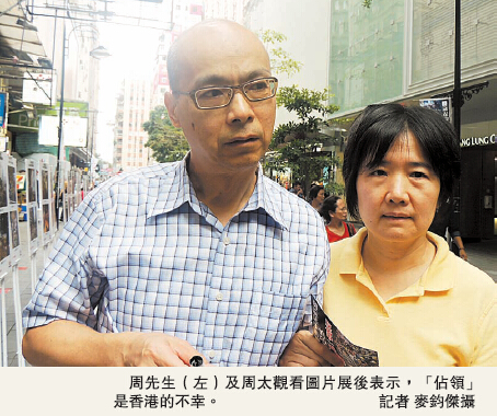 已退休的周先生聯同妻子一同觀賞圖片展,他形容「佔領」亂局,於香港實屬不幸,並慨嘆圖片展令他回想起去年參與「佔領」行動的年輕人,其實不自覺地做出「文革式」行為,令本港充斥暴戾。周先生及周太都表示,「佔領」行動令港島一帶十分不方便,巴士需要繞道而行,浪費很多時間。
