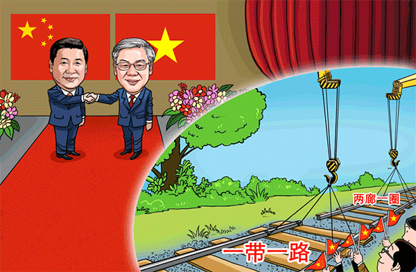 習近平強調,無論國際風雲如何變幻,雙方都應該堅持從戰略高度和長遠角度看待和處理中越關係,共同建設命運共同體,造福兩國人民,為本地區乃至世界的穩定和發展作出貢獻。雙方在政治上要把握好大方向,加強戰略溝通,增進政治互信,確保中越關係始終沿著正確軌道前進。在經濟上要抓好務實合作,以對接發展戰略、落實大項目合作為抓手,共同開創中越經貿合作新局面。雙方要加緊協商「一帶一路」和「兩廊一圈」框架內合作,協調推進兩國多領域產能合作,集中精力做好幾個有代表性的大項目,大力推動兩國邊境合作。中方願為越方加強基礎設施建設提供必要支持,深化中越金融合作,繼續鼓勵企業赴越投資興業,希望越方為中國企業赴越投資經營提供支持和便利。雙方要堅持通過友好協商,維護海上穩定,推進海上合作。