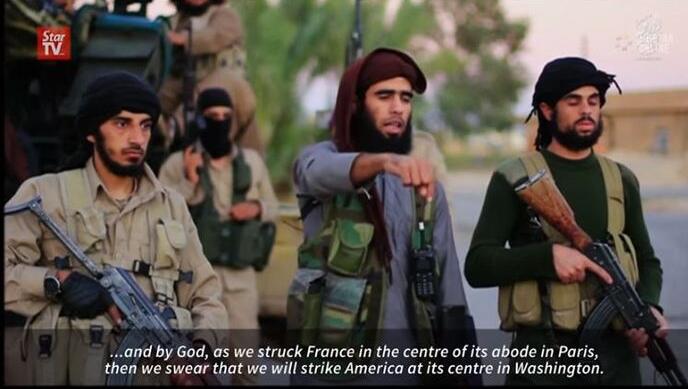 该片段在伊斯兰国经常用来发布讯息的网站发布,片段初时报道巴黎上周五恐袭後的市面情况,其後显示一名男子在放话,警告在敍利亚空袭伊斯兰国圣战士的国家,有一天也会像法国一样。显然是指巴黎上周五遭受的恐怖袭击。他说:「我们攻击了法国巴黎的中心,我们发誓也将攻击美国华府的中心。」