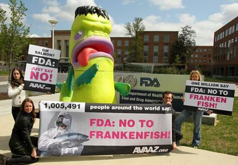 反对转基因三文鱼的抗议者。