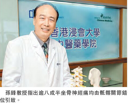 【香港商报网讯】香港浸会大学中医药学院完成的一项有关坐骨神经痛的临床观察显示,86.29%病例的发病原因是由於「媁髂关节错位」,只有7.26%病例属於临床上常说的「腰椎间盘脱出症」。浸大中医药学院临床部高级讲师孙锋指出,临床上要对病人进行媁髂关节检查,为他们提供合适的治疗方案。