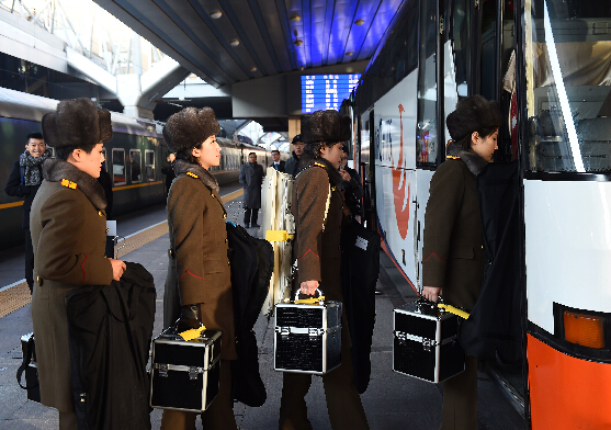 当日,朝鲜国家功勋合唱团、牡丹峰乐团抵达北京,来华进行演出。据悉,这两大朝鲜知名文艺团体将于12日至14日在北京的国家大剧院演出3天,将为增进朝中两国人民的友谊、进一步发展文化艺术交流作出贡献。这是牡丹峰乐团首次出国演出。