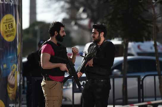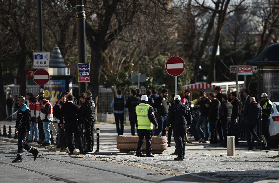 土耳其伊斯坦布尔旅游景点爆炸已致10人死亡1月12日,在土耳其伊斯坦布尔,警方人员封锁通向蓝色清真寺的道路。
